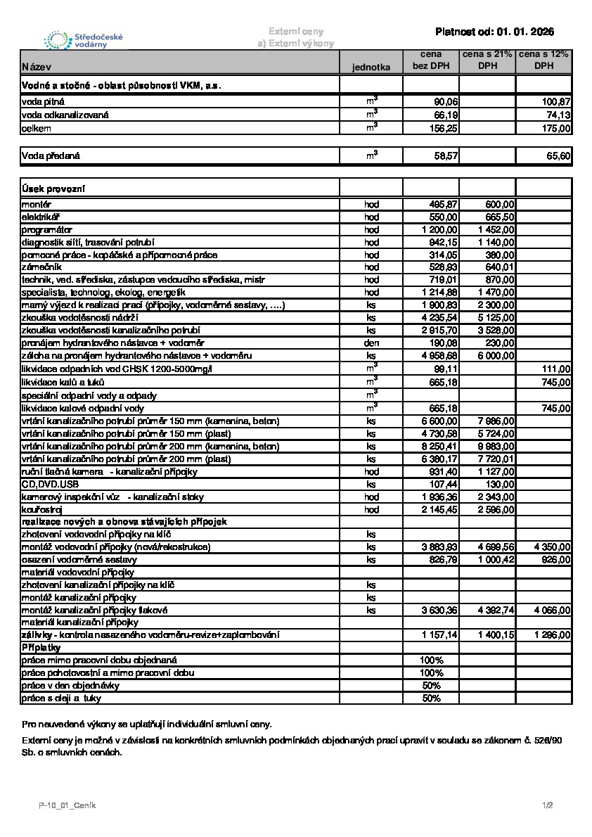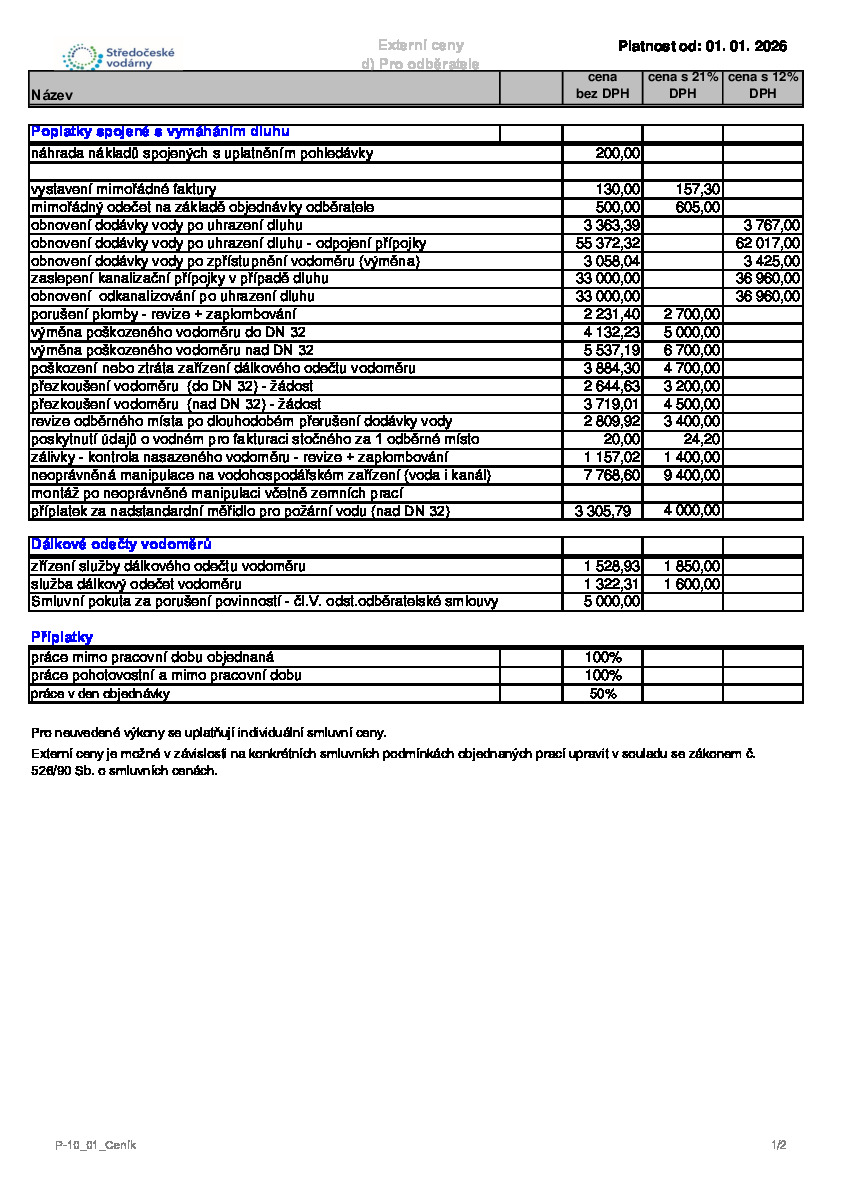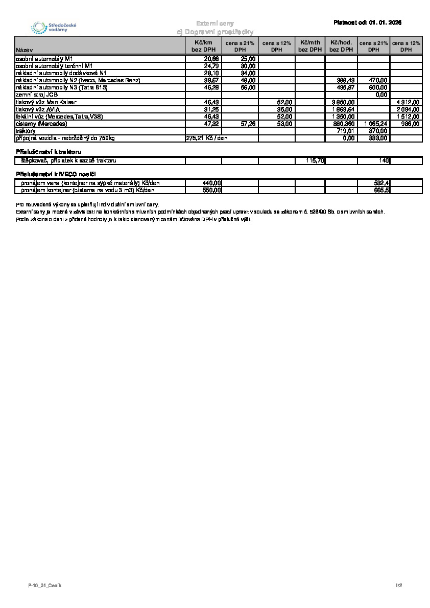 Ceny pro spotřebitele od 1.1.2026 jsou zveřejněny dle § 13, odst. 2 Zákona o cenách