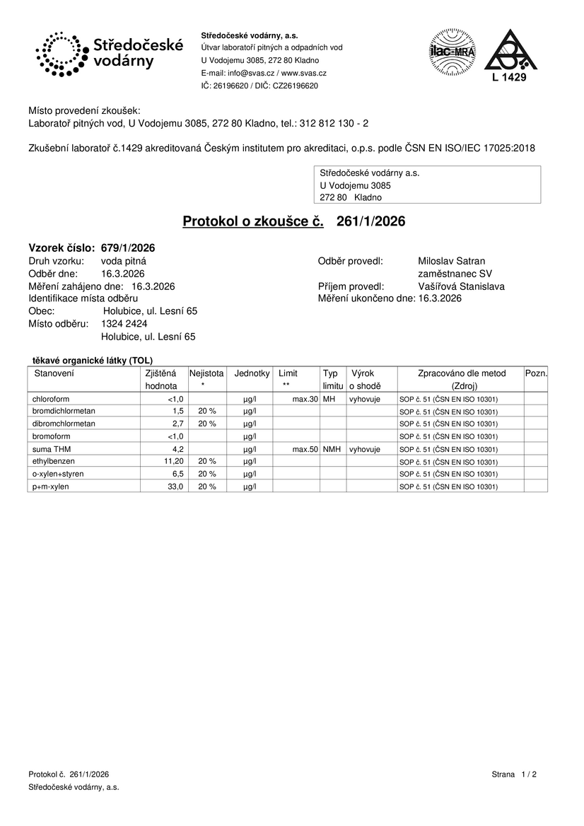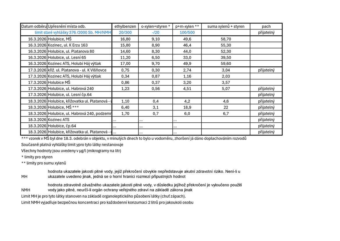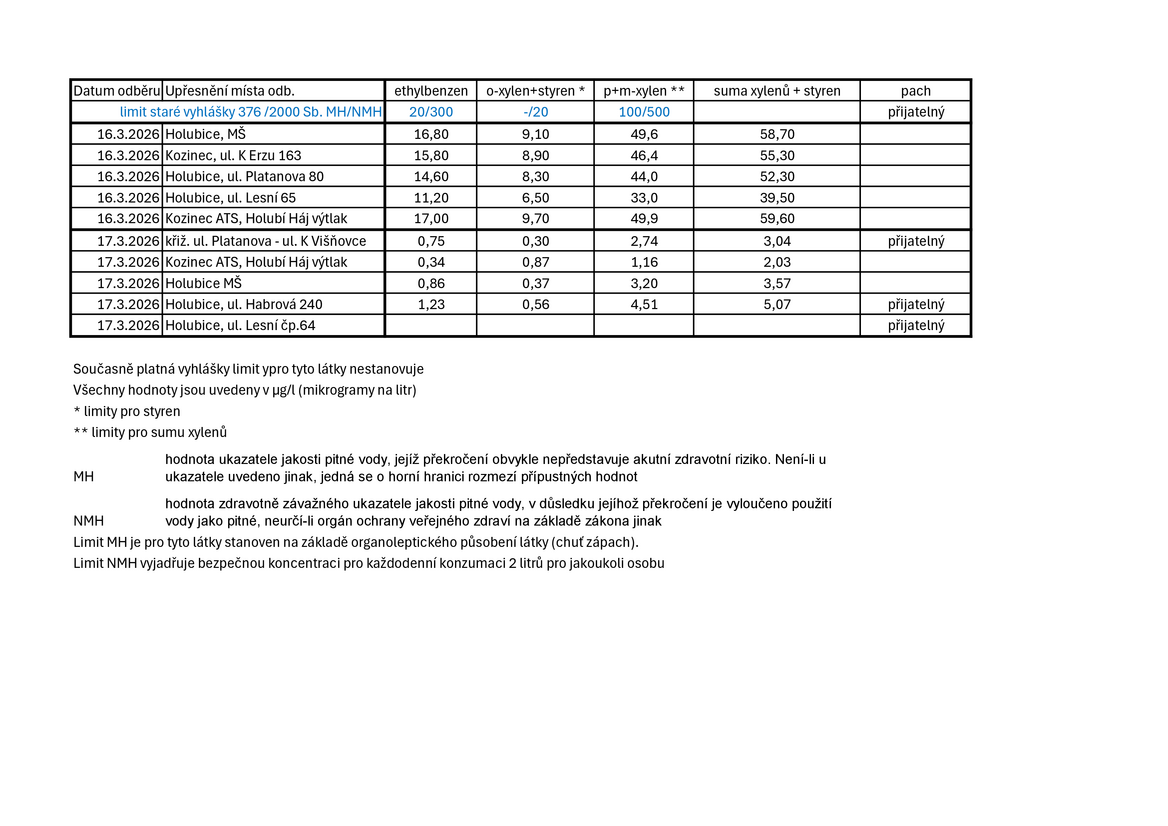Současně doplňujeme informace k dotazům na ovlivnění změkčovačů: standardním způsobem jako funguje změkčování, se na pryskyřici dané látky nevážou. Nicméně pryskyřice je organická látka, podobně jako ta rozpouštědla proto se na ni mohou tyto látky částečně nasorbovat. Funkci iontové výměny to nijak neovlivní. Navíc výměna vápníku a hořčíku za sodík se děje v desítkách miligramů. Koncentrace znečištění byla řádově nižší. K dalšímu ovlivnění funkce změkčovače tak nedošlo a nedojde. Zpětné vyplavování z ionexu bude minimální a obdobné jako z vlastních polyetylénových rozvodů vody.